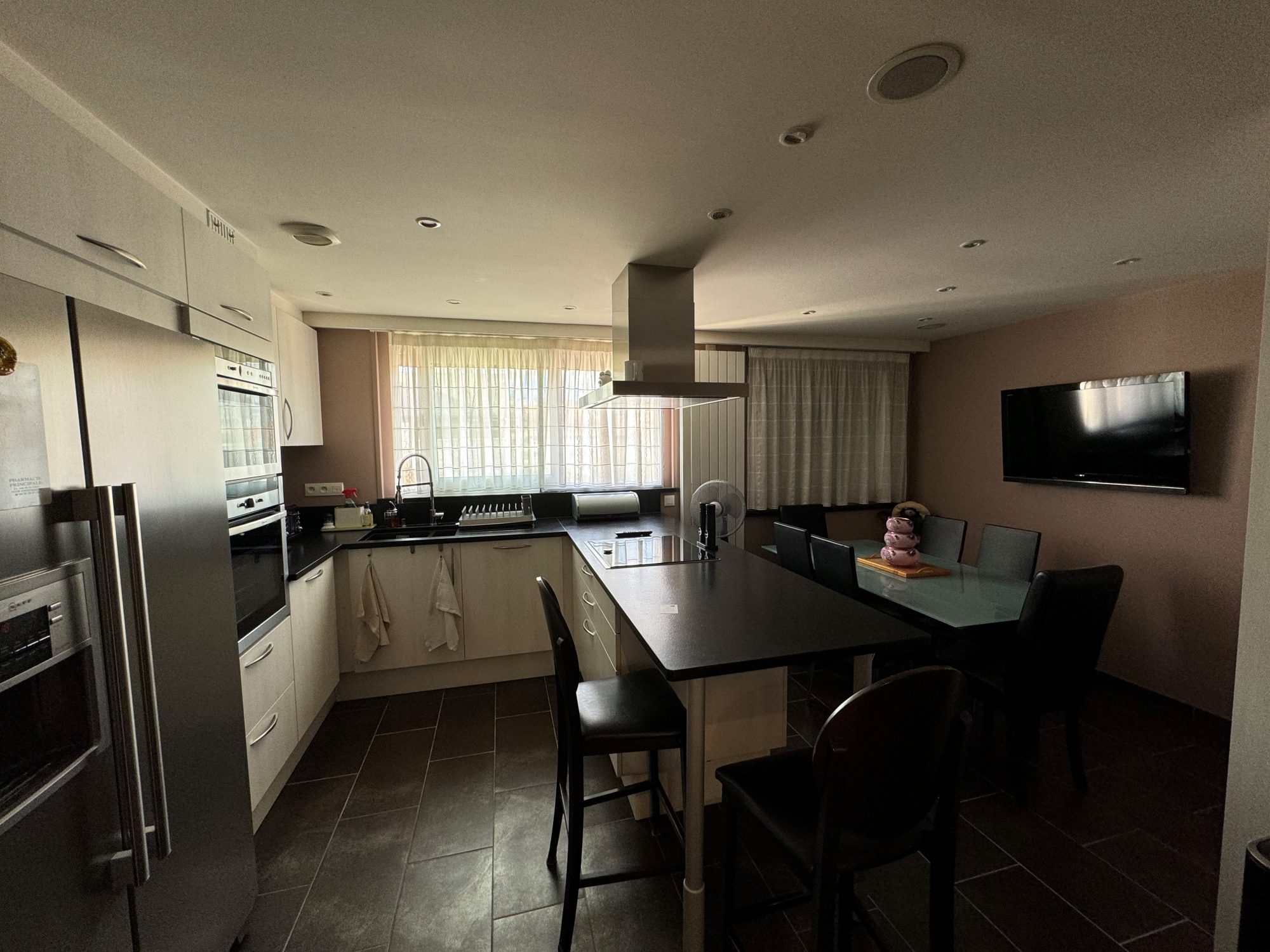 T4 transformé en T3 hall d’entrée, un salon-séjour, une grande cuisine équipée, deux chambres, une salle de bains et un WC indépendant.